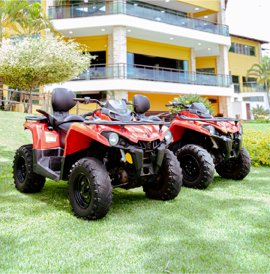 Para quem gosta de adrenalina em meio à natureza, o passeio de quadriciclo é a atividade ideal. Acompanhado por um guia, o trajeto inclui paradas estratégicas para conhecer os pontos mais belos e surpreendentes da paisagem local, contando com uma exuberante natureza. Uma experiência que une adrenalina e contato com a natureza em um cenário de tirar o fôlego.